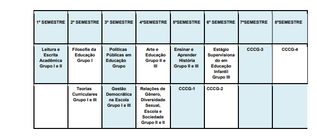 – Estágio Supervisionado na Educação Infantil ou Estágio Supervisionado nos Anos Iniciais do Ensino Fundamental;
