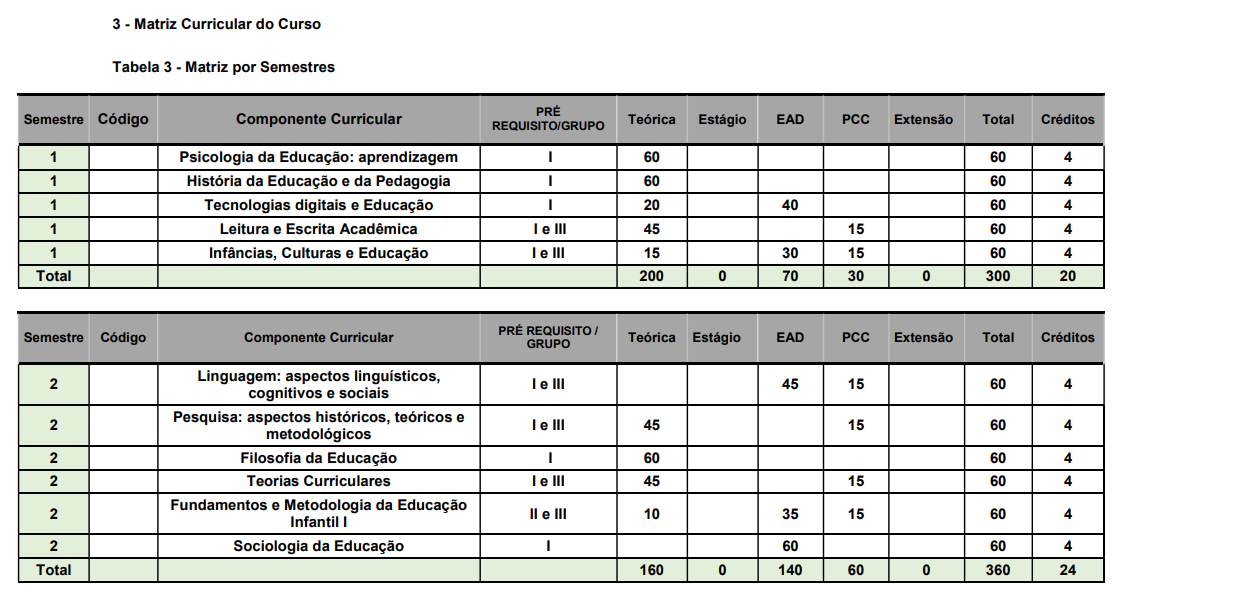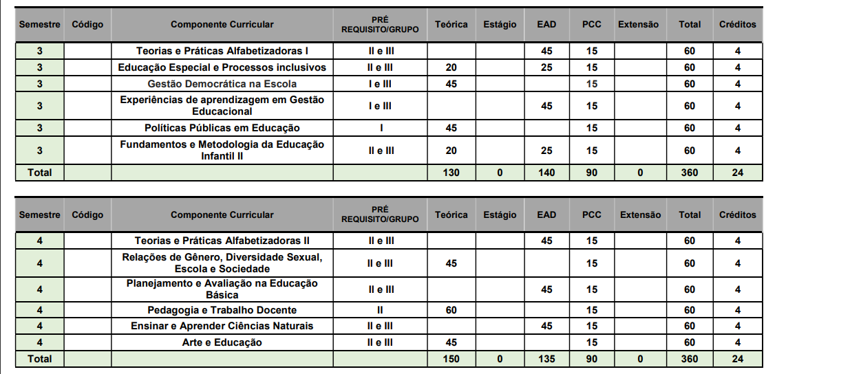 Equivalências e Pré-requisitos – PPC Pedagogia 2023