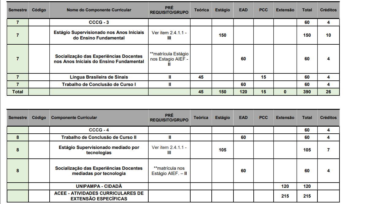Para realização do Estágio Supervisionado nos Anos Iniciais do Ensino Fundamental – VII Semestre é necessário ter integralizado ou estar cursando os seguintes componentes: