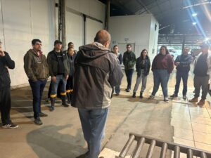 Na manhã de terça-feira, 30 de setembro de 2025, os alunos dos cursos de Tecnologia em Fruticultura e Gestão Ambiental da Unipampa – Campus São Gabriel, acompanhados pelas professoras Cássia Regina Nespolo, docente das disciplinas Ciência de Alimentos e Tecnologia do Processamento de Frutas, e Andressa Rocha Lhamby, docente das disciplinas Sustentabilidade Empresarial e Mercado Verde, realizaram uma visita às dependências da empresa Gorange Cultivo, Comércio, Importação e Exportação de Frutas Ltda., localizada na Fazenda Santa Eulália, interior do município de Santa Margarida do Sul.