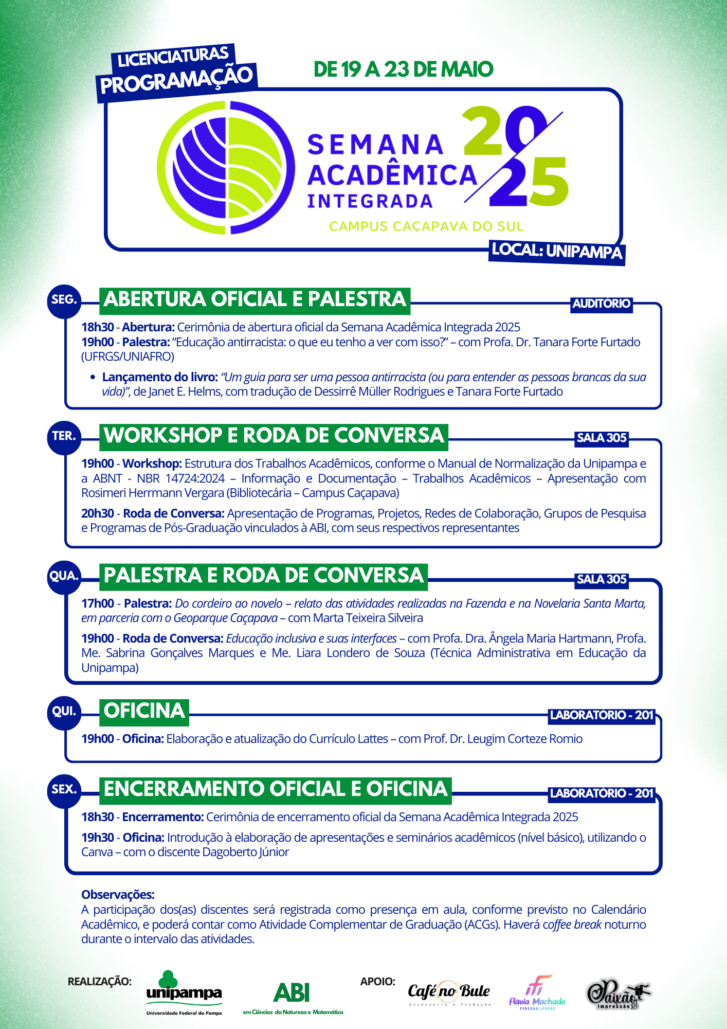 Em 06/05/2025, 19hs, sala 305 do campus Caçapava do Sul da Universidade Federal do Pampa.