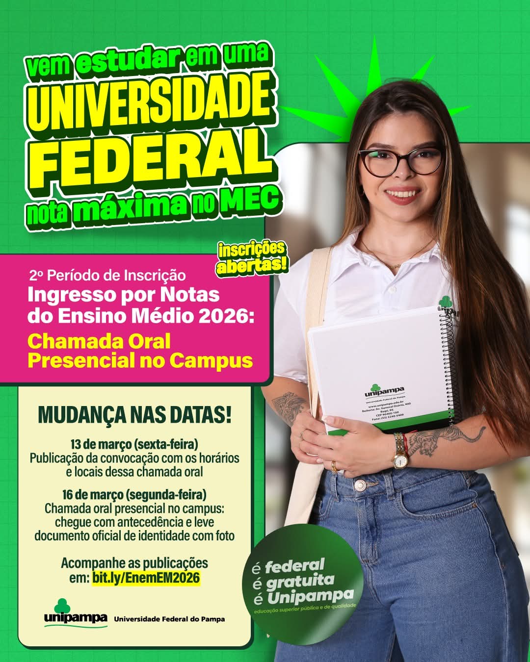 2º Período de Inscrições para o Ingresso por Notas do Ensino Médio 2026- chamada oral – troca de data – 16-3