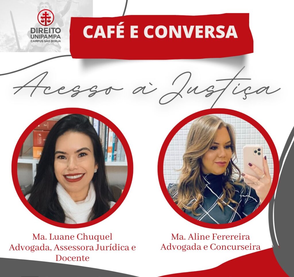 O encontro virtual “Café e Conversa” abordará um tema fundamental para o Direito e para a sociedade: “Acesso à Justiça”. Para enriquecer a discussão junto ao componente curricular de Teoria Geral do Direito I, teremos a honra de receber a Ma. Aline Ferereira.