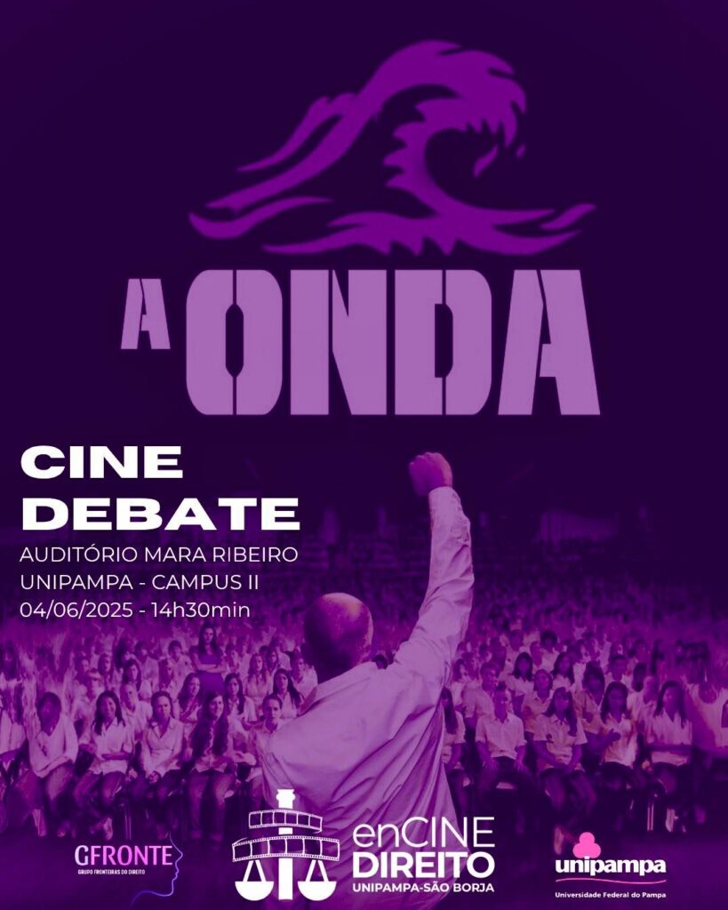 O projeto enCINE Direito, com o apoio do GFronte, convida toda a comunidade acadêmica para a Sessão de Cine Debate com exibição do filme “A Onda” (Die Welle, 2008), uma reflexão poderosa, baseada em fatos reais, sobre autoritarismo, comportamento coletivo e os limites da liberdade. Venha assistir o filme, comer pipoca, tomar café e debater conosco!