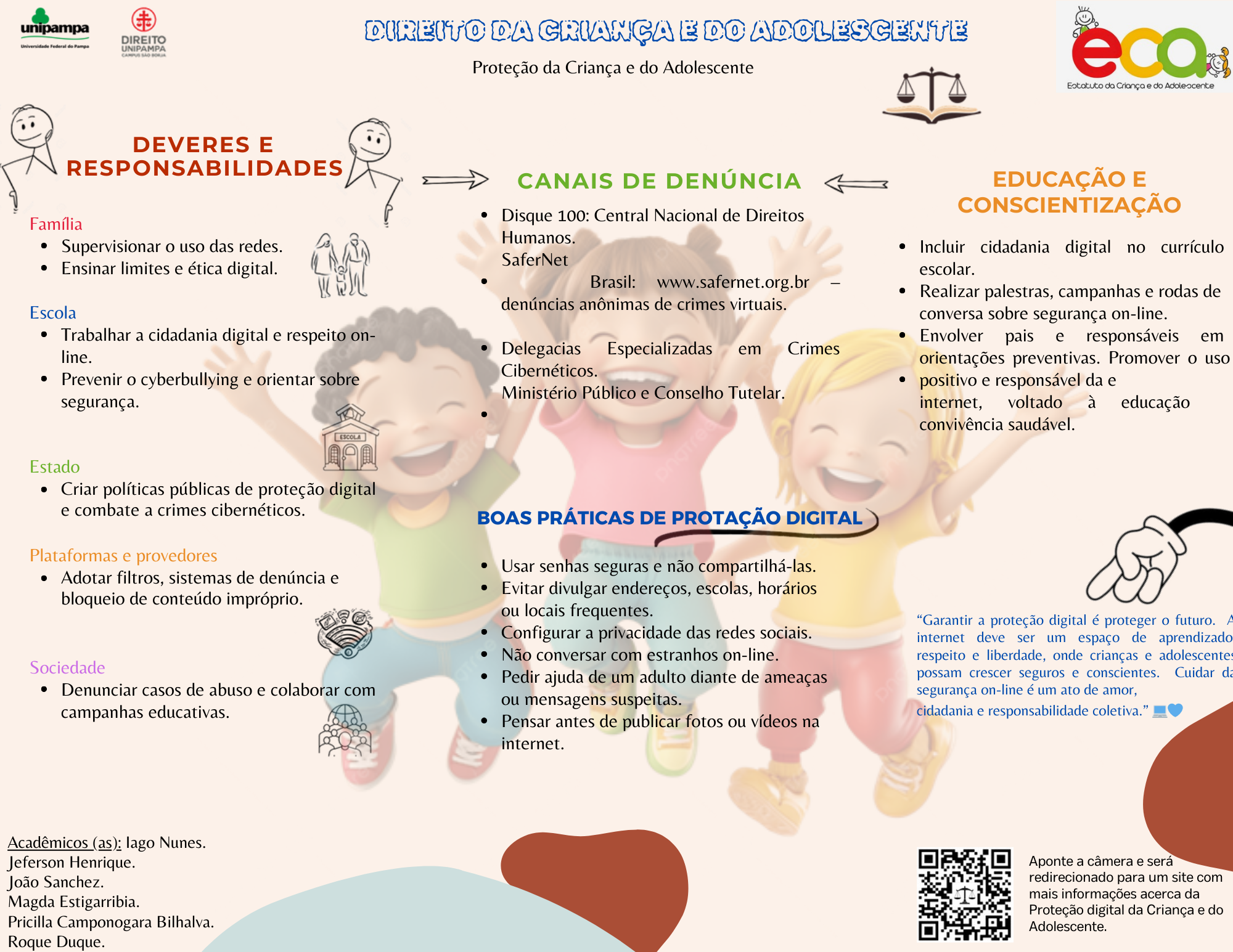 Cartilha sobre Proteção digital da Criança e do Adolescente elaborada no componente curricular “Estatuto da Criança e do Adolescente” sob orientação da professora Mariluci de Matos Gonçalves.