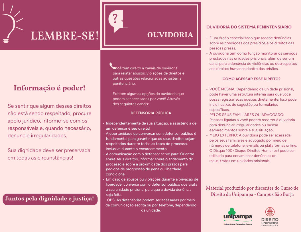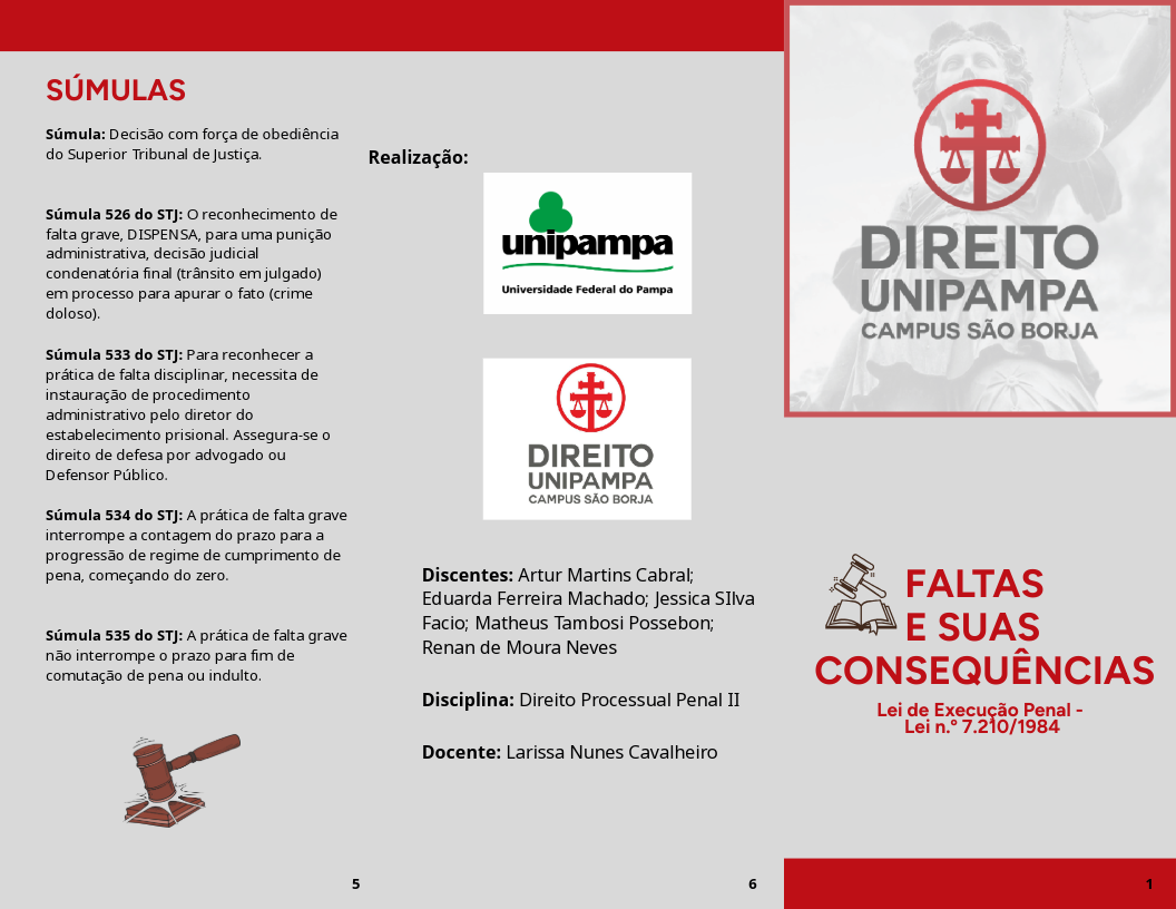 Informativos sobre a Execução Penal, prevista na Lei n° 7.210/84, realizados pelos/pelas discentes do componente curricular obrigatório “Direito Processual Penal II”, ministrado pela Profa. Larissa Nunes Cavalheiro em 2024/2.