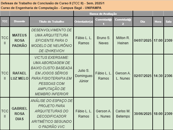 Convidamos todos(as) para prestigiar as Defesas de Trabalho de Conclusão de Curso II (TCC II) referentes ao semestre 2025/1.