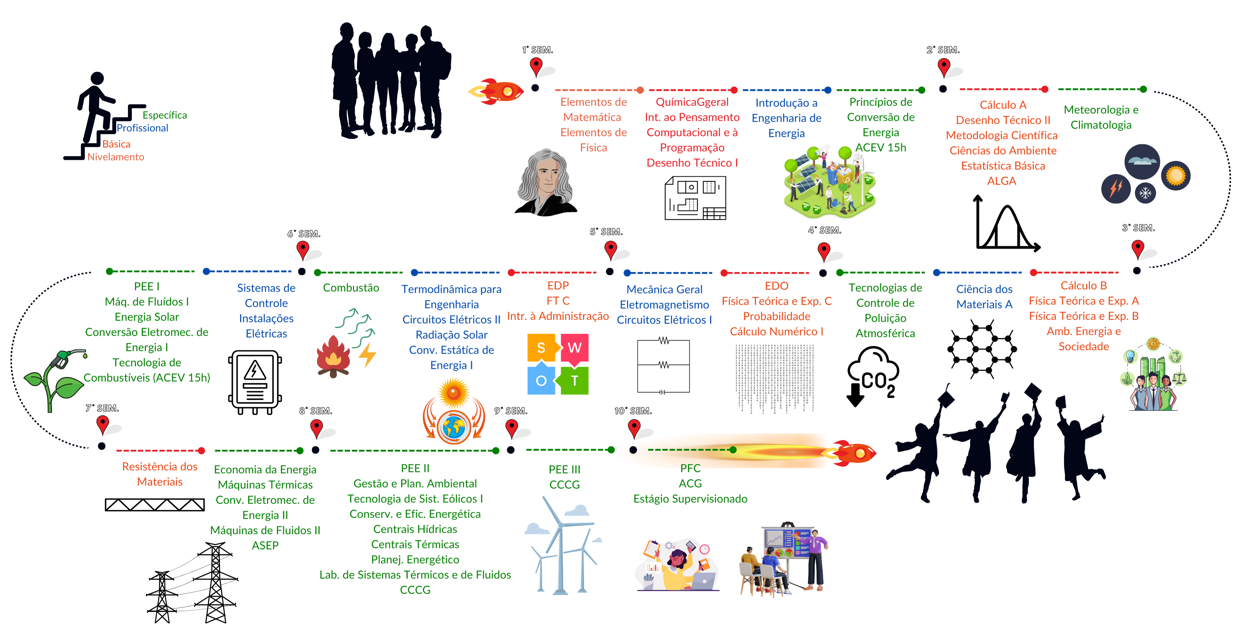 Projeto Pedagógico do Curso (PPC) de Engenharia de Energia (versão 2023) foi recentemente aprovado. Discentes ingressantes de 2023 em diante fazem parte deste novo PPC. A matriz curricular contém 3915 horas.