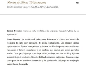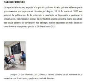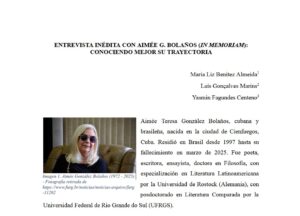 Se publicó, en la revista Norteamentos, la Entrevista inédita con Aimée G. Bolaños (in memoriam): Conociendo mejor su trayectoria, conducida por las alumnas Laís Marins y Yasmin Centeno.