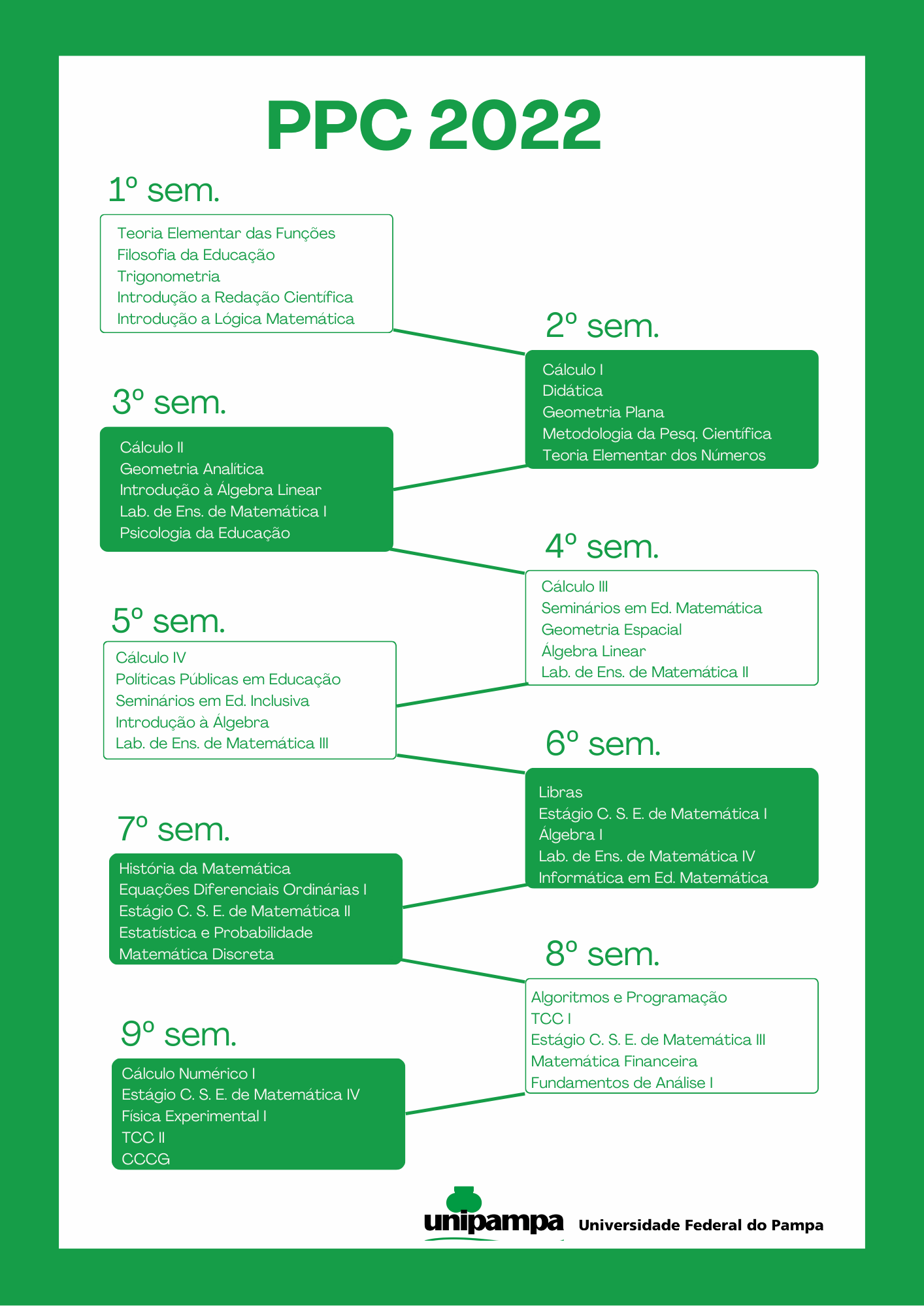 Confira a seguir a matriz curricular de cada um dos PPCs vigentes: