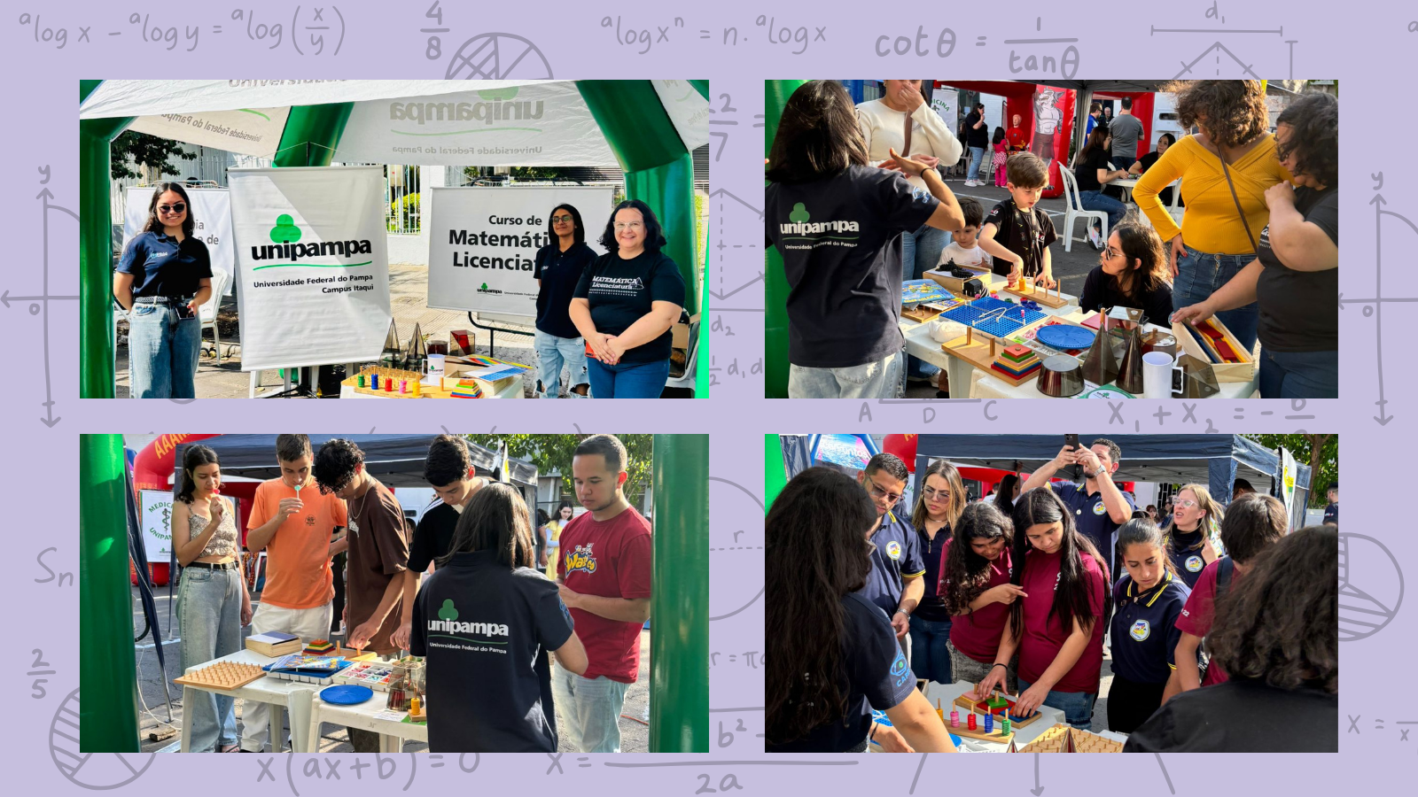 No dia 13 de setembro de 2025, o Curso de Licenciatura Matemática da Unipampa, participou da Feira das Profissões promovida pelo Olavo Pré-Vestibular em Uruguaiana-RS. Professores e alunos apresentaram materiais manipuláveis à comunidade para demonstrar, de forma prática e instigante, conceitos matemáticos, que despertaram curiosidade. Também conversaram com visitantes interessados, tirando dúvidas sobre o curso, mostrando o cotidiano acadêmico, as possibilidades de atuação profissional e como o pensamento matemático ajuda no dia a dia.