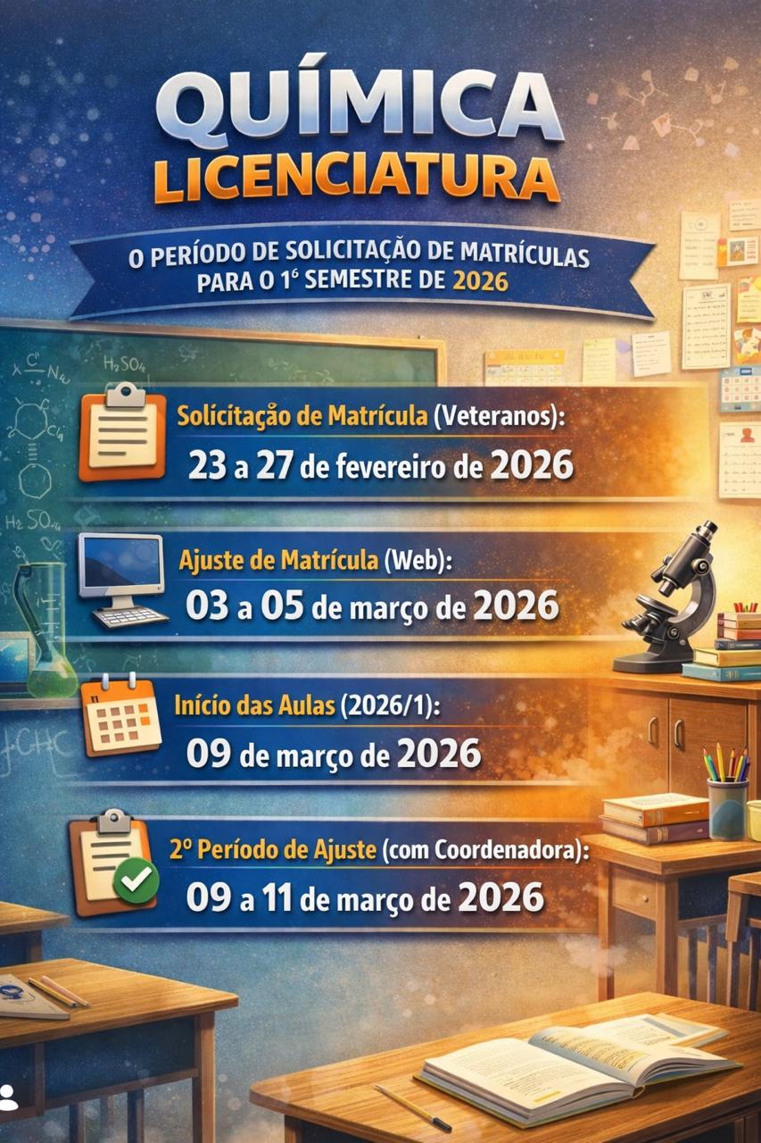 Vimos por meio deste convocá-los para uma Assembleia do Curso, para tratarmos da apresentação do novo Projeto Pedagógico do Curso de Química Licenciatura (PPCQL 2023).