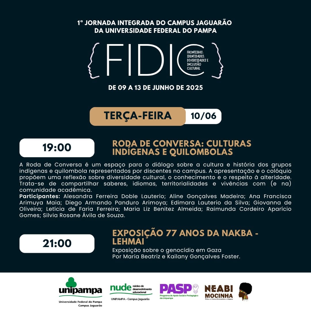 A Roda de Conversa é um espaço para o diálogo sobre a cultura e a história dos grupos indígenas e quilombolas representados por discentes no campus. A proposta busca refletir sobre diversidade cultural, conhecimento e respeito à alteridade.