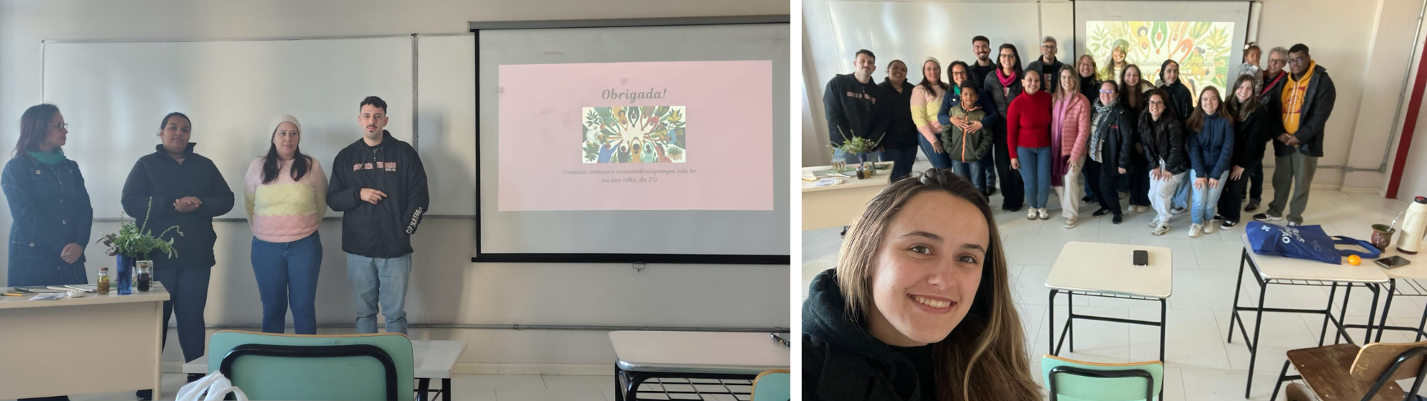 No dia 18 de novembro, pela manhã, as estudantes Ana Paula Prado Carvalho, Daniela da Silva de Leon Bitencourt e Paula da Cruz Pedroso, da Universidade Federal do Pampa (UNIPAMPA), acompanhadas pela Profª Drª Gabriela Silveira da Rosa, realizaram uma atividade prática voltado para a exploração de alternativas mais ecológicas ao plástico convencional. Durante a atividade, foram apresentados conceitos básicos sobre o plástico tradicional e seus impactos ambientais, seguidos de uma demonstração prática comparando a degradação do plástico PVC com os filmes de gelatina. A iniciativa propôs uma oportunidade potencial para estimular os alunos do 3º ano do ensino fundamental, destacando a importância de soluções sustentáveis e promovendo a troca de conhecimento entre a academia e a comunidade escolar.