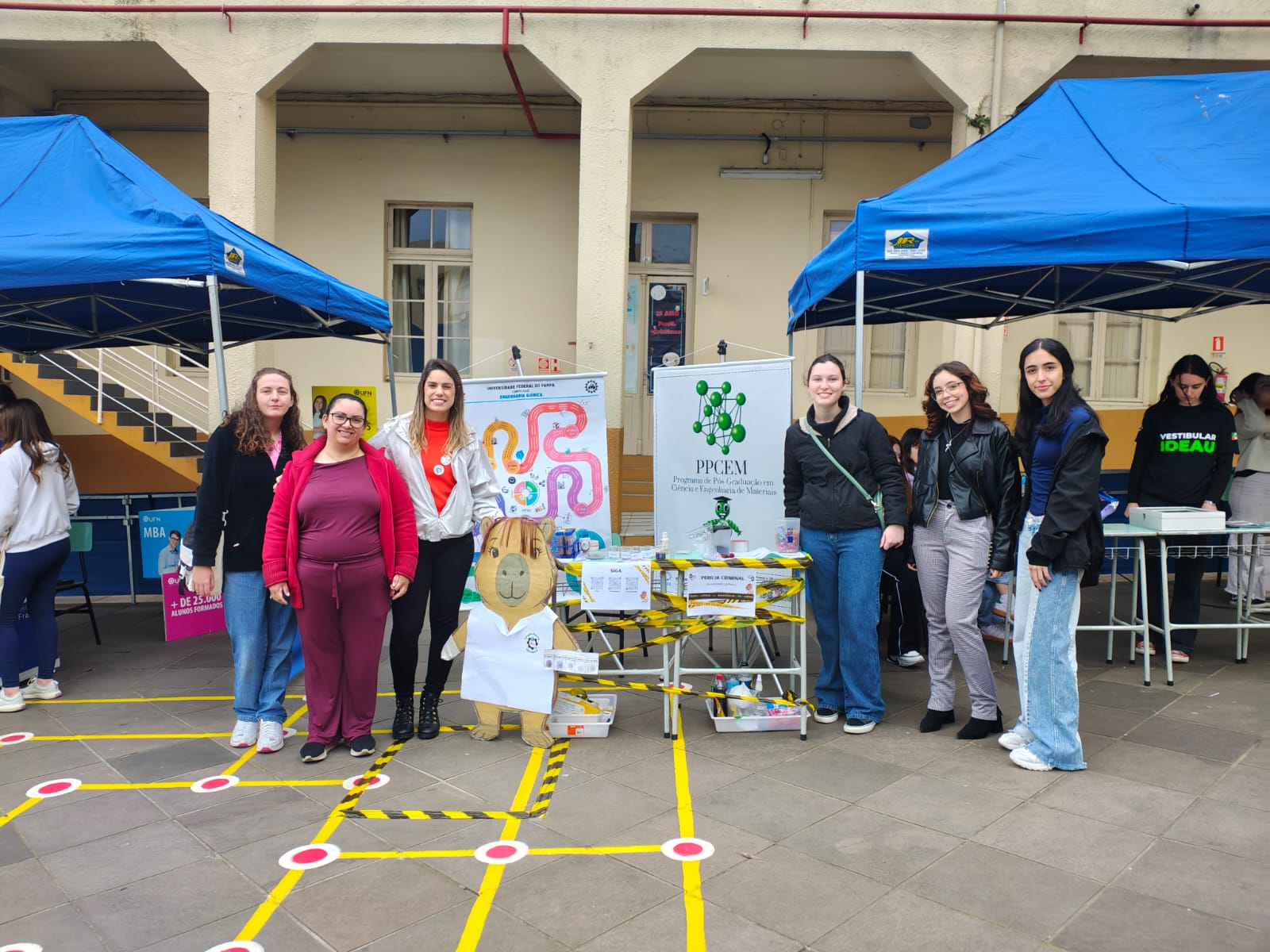 No dia 08 de outubro de 2025, discentes do Programa de Pós-Graduação em Ciência e Engenharia de Materiais (PPCEM) e do curso de Engenharia Química da Universidade Federal do Pampa (UNIPAMPA), acompanhados por docentes vinculados aos projetos de ensino, pesquisa e extensão, participaram de uma atividade realizada na Escola Carlos Kluwe.