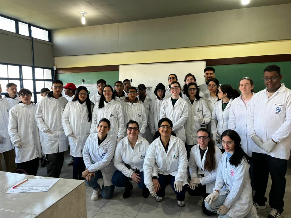 No dia 17 de outubro 2025, discentes do curso de Engenharia Química e membros de projetos de extensão da Universidade Federal do Pampa (UNIPAMPA) realizaram uma visita à E.E.E.M. Dr. Luiz Maria Ferraz – CIEP, promovendo uma atividade voltada ao uso e valorização dos recursos laboratoriais disponíveis na própria escola.