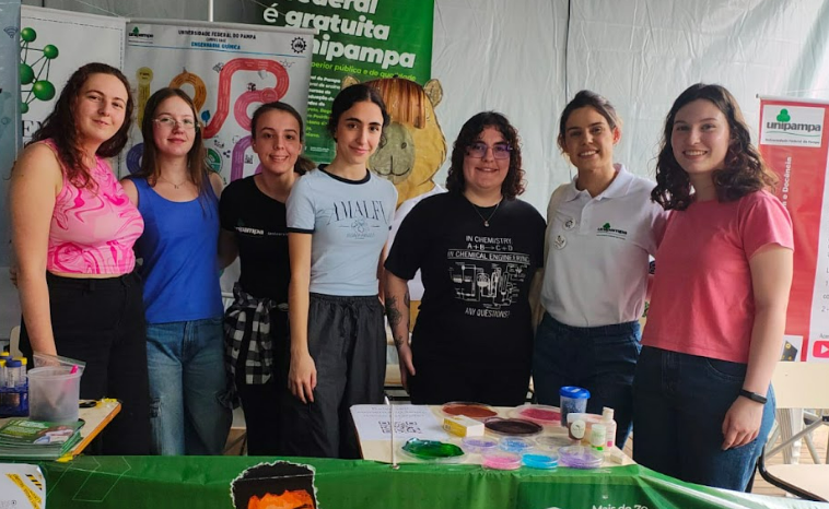 No dia 24 de outubro de 2025, estudantes do curso de Engenharia Química e do Programa de Pós-Graduação em Ciência e Engenharia de Materiais (PPCEM) da Universidade Federal do Pampa (UNIPAMPA) participaram da 27º Feira do Livro.