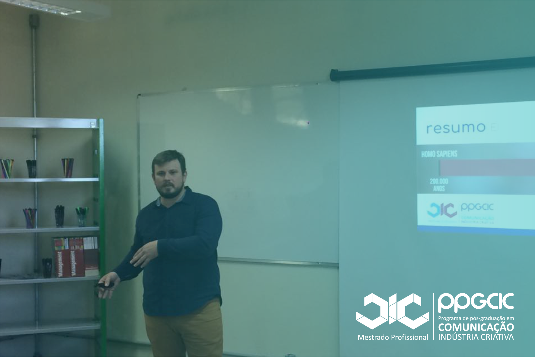 Cursos da Unipampa > PPGCIC - Programa de Pós-Graduação em Comunicação e Indústria Criativa > História do Programa > Notícias > Mestrandos da segunda turma do PPGCIC apresentam seus projetos de Pesquisa, Desenvolvimento e Inovação > André