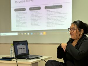 A professora Aline Amaral Paz, docente do PPGCIC, também integrou o mesmo GT, no qual apresentou a pesquisa “Influenciadoras digitais criadas com inteligência artificial: Milla Sofia e a reprodução da estética patriarcal”. Além de pesquisadora e apresentadora do trabalho, Aline também foi uma das proponentes do Grupo de Trabalho, em parceria com a professora Ali Machado, da Universidade Federal do Rio Grande (FURG). A docente ainda coordenou a delegação da UNIPAMPA no evento, composta por 38 estudantes, responsáveis pela apresentação de 19 trabalhos ao longo da programação.