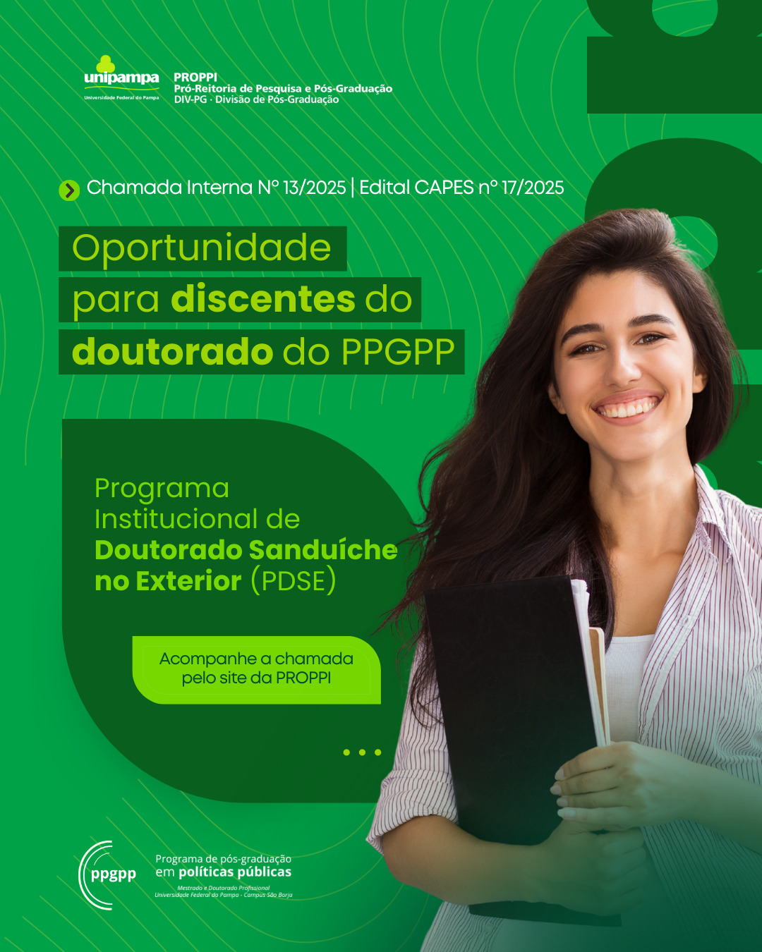 A PROPPI divulgou a Chamada Interna Nº 13/2025, que trata da seleção de candidatos ao Programa Institucional de Doutorado Sanduíche no Exterior (PDSE), em conformidade com o Edital Capes Nº 17/2025.