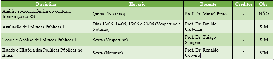 Cursos da Unipampa > Programa de Pós-graduação em Políticas Públicas - Mestrado e Doutorado - PPGPP > Horário Disciplinas