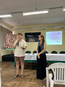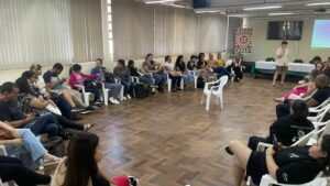 Após um intervalo para lanche, as atividades foram retomadas com a discussão sobre a extensão universitária, destacando a curricularização, o programa Unipampa Cidadã e os projetos de ensino, pesquisa e extensão desenvolvidos no curso pelos/as docentes