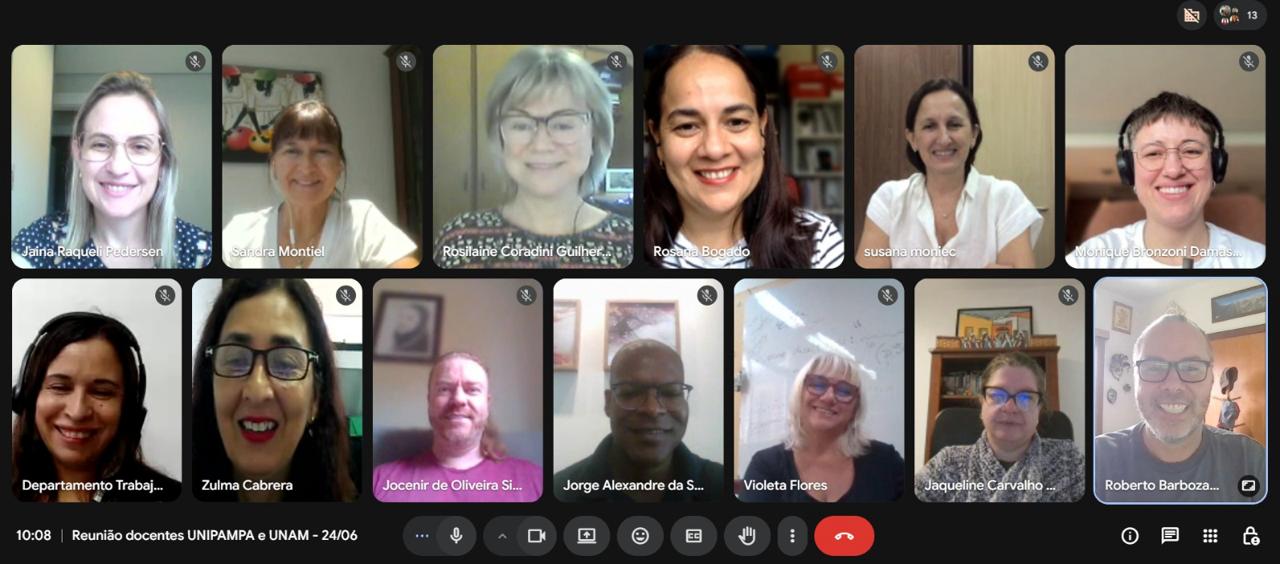 Na manhã do dia 24 de abril de 2026, estiveram reunidos/as docentes dos cursos de Graduação em Serviço Social e Pós Graduação em Serviço Social e Proteção Social da Unipampa, campus São Borja/RS-Brasil e docentes de Graduação e Pós Graduação da Facultad de Humanidades y Ciencias Sociales Universidad Nacional de Misiones/Posadas – Argentina, também da área de Serviço Social, via plataforma google meet, com a finalidade de alinhar ações e dialogar sobre convênios específicos entre os cursos de Serviço Social de ambas instituições, visando consolidar projetos de ensino, pesquisa e extensão, bem como mobilidade docente, discente e de TAEs que desenvolvem atividades dos cursos envolvidos nos mais diferentes níveis, seja graduação, mestrado, doutorado ou pós doutorado.
