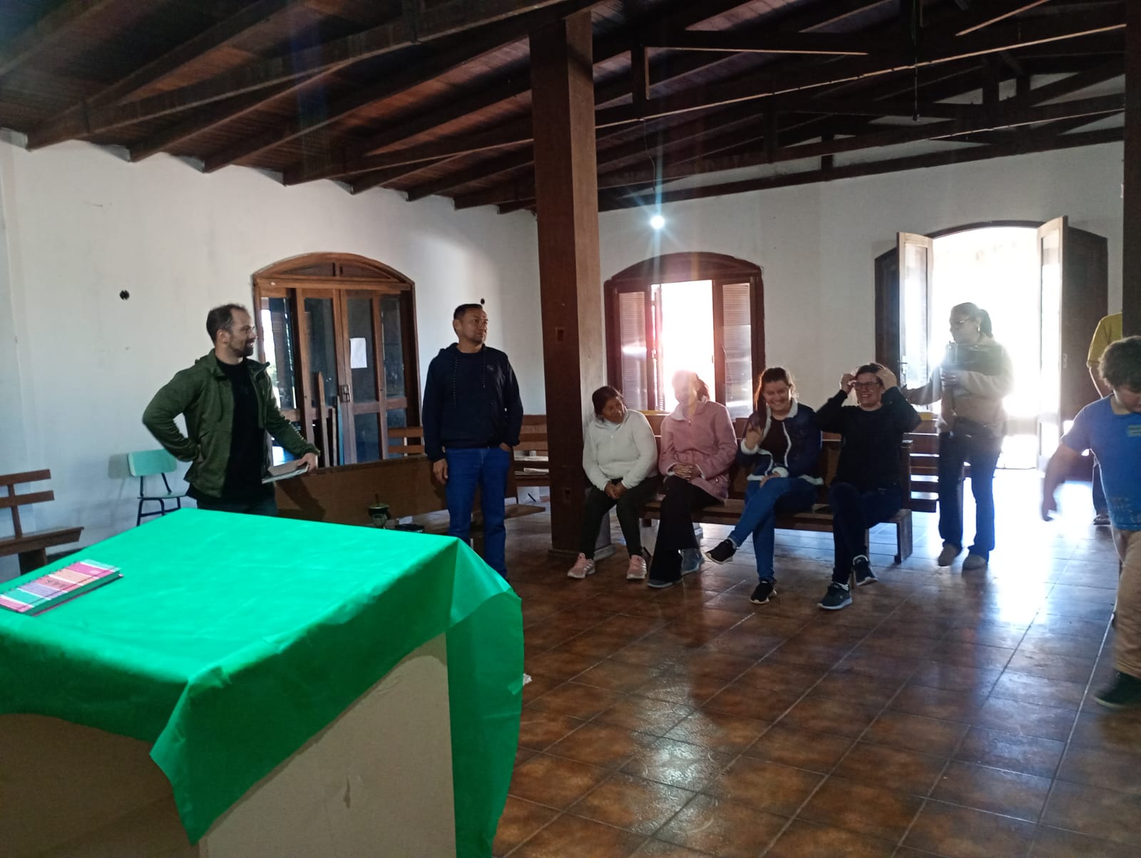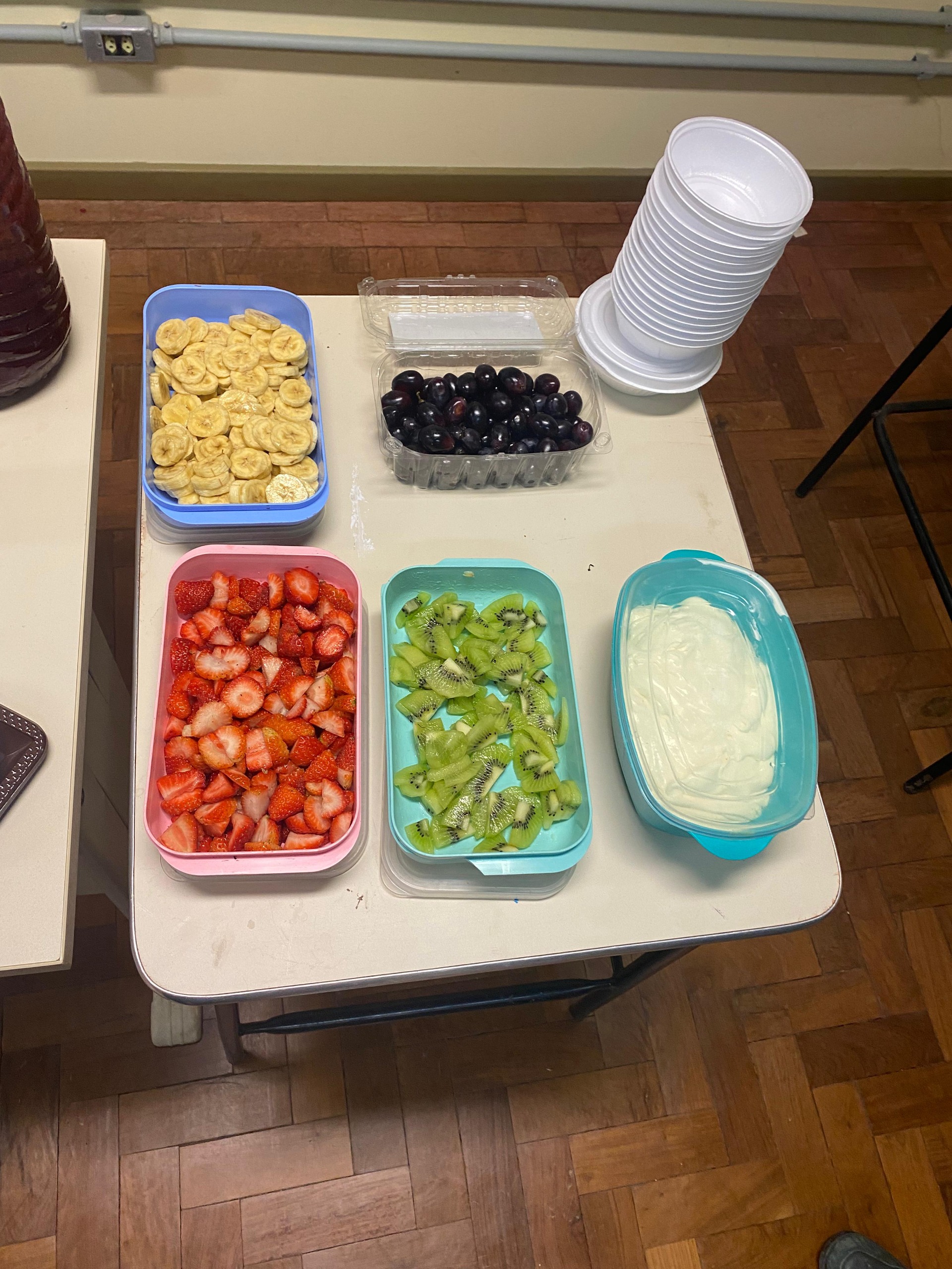 Mesmo sob forte chuva durante a visita, o grupo foi calorosamente recebido pelo senhor Antônio Sanchotene Gonçalves, engenheiro agrônomo da propriedade Santa Eulália, que explicou sobre a implantação do pomar como nova alternativa de renda, a origem das mudas, as dificuldades iniciais, as espécies cultivadas, adubação, podas, frutificação, colheita, comercialização e a experiência da industrialização do suco das frutas produzidas na propriedade.